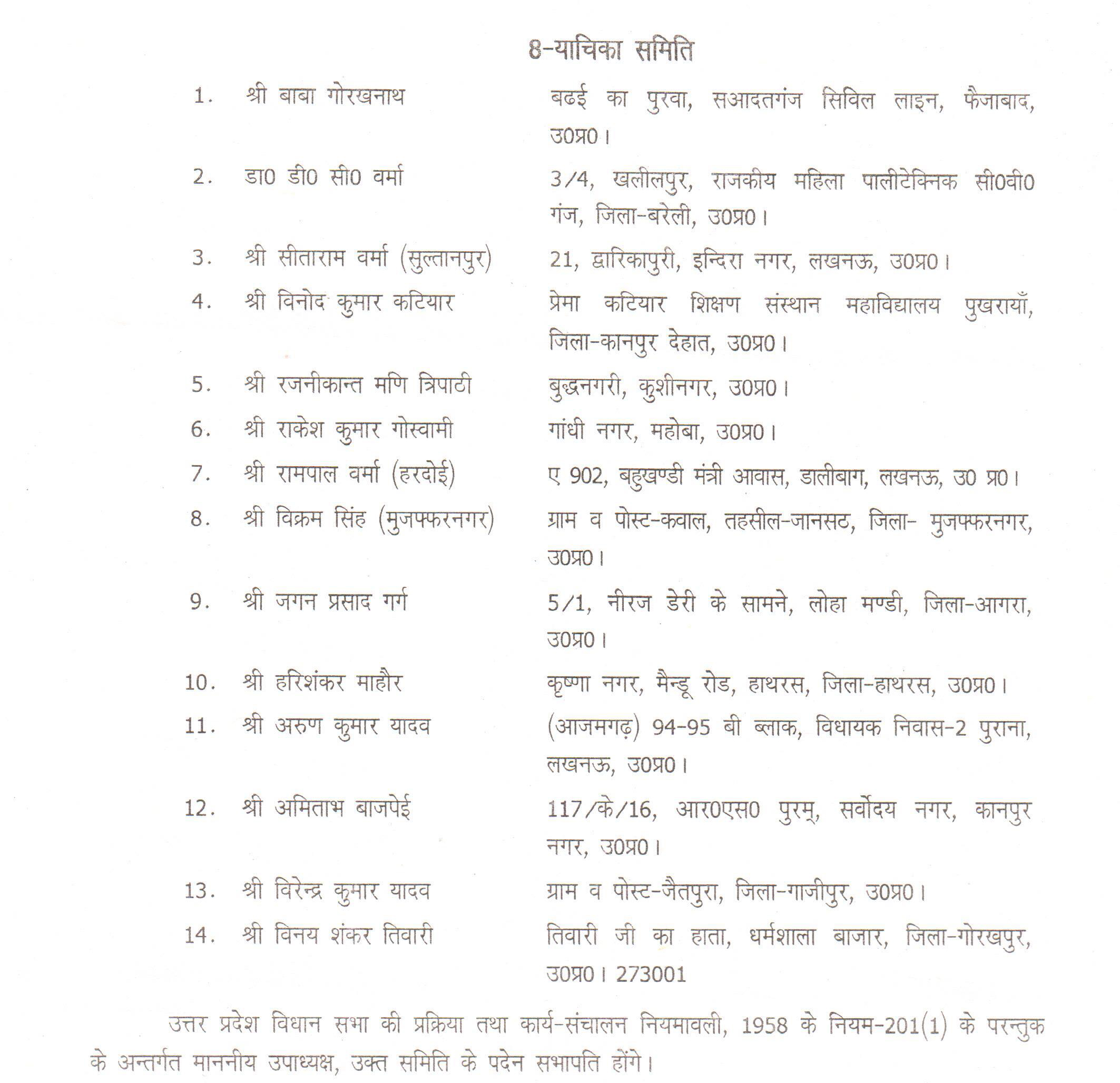 नियम २३२-ख-समिति का गठन-समिति में सभापति को शामिल करते हुए ३५ सदस्य होंगे, जिनमें से २५ सदस्य विधान सभा के और १० सदस्य विधान परिषद् के होंगे, जो प्रत्येक सदन के सदस्यों में से आनुपातिक प्रतिनिधित्व के सिद्वान्त के अनुसार एकल संक्रमणीय मत द्वारा निर्वाचित होंगे: