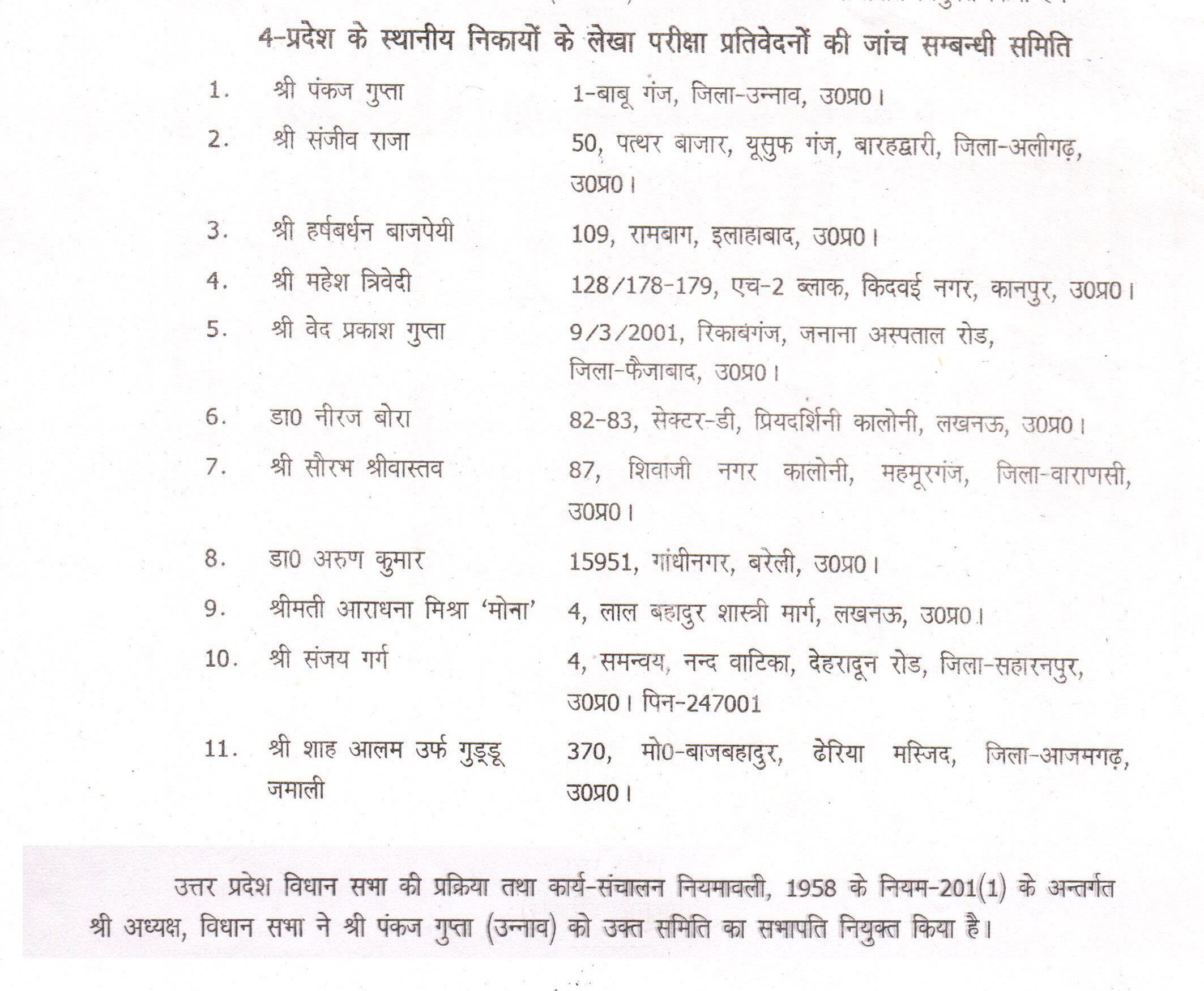 वर्ष 2017-2018 प्रदेश के निकायों स्थानीय निधि लेखा परीक्षा समिति के सदस्यों की सूची