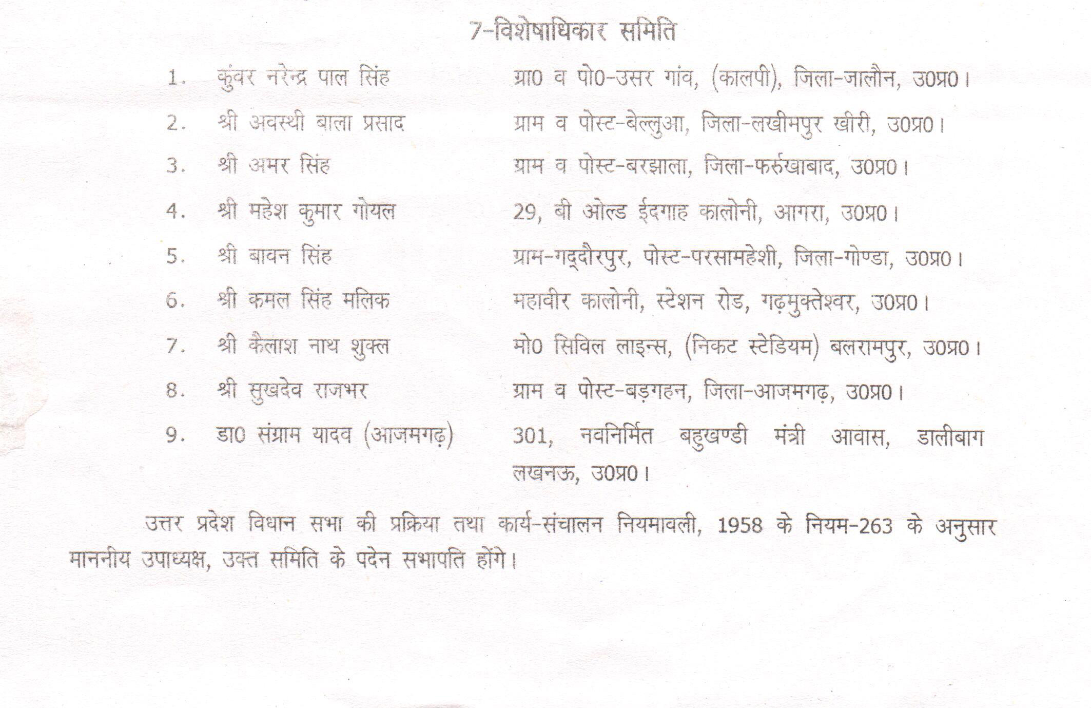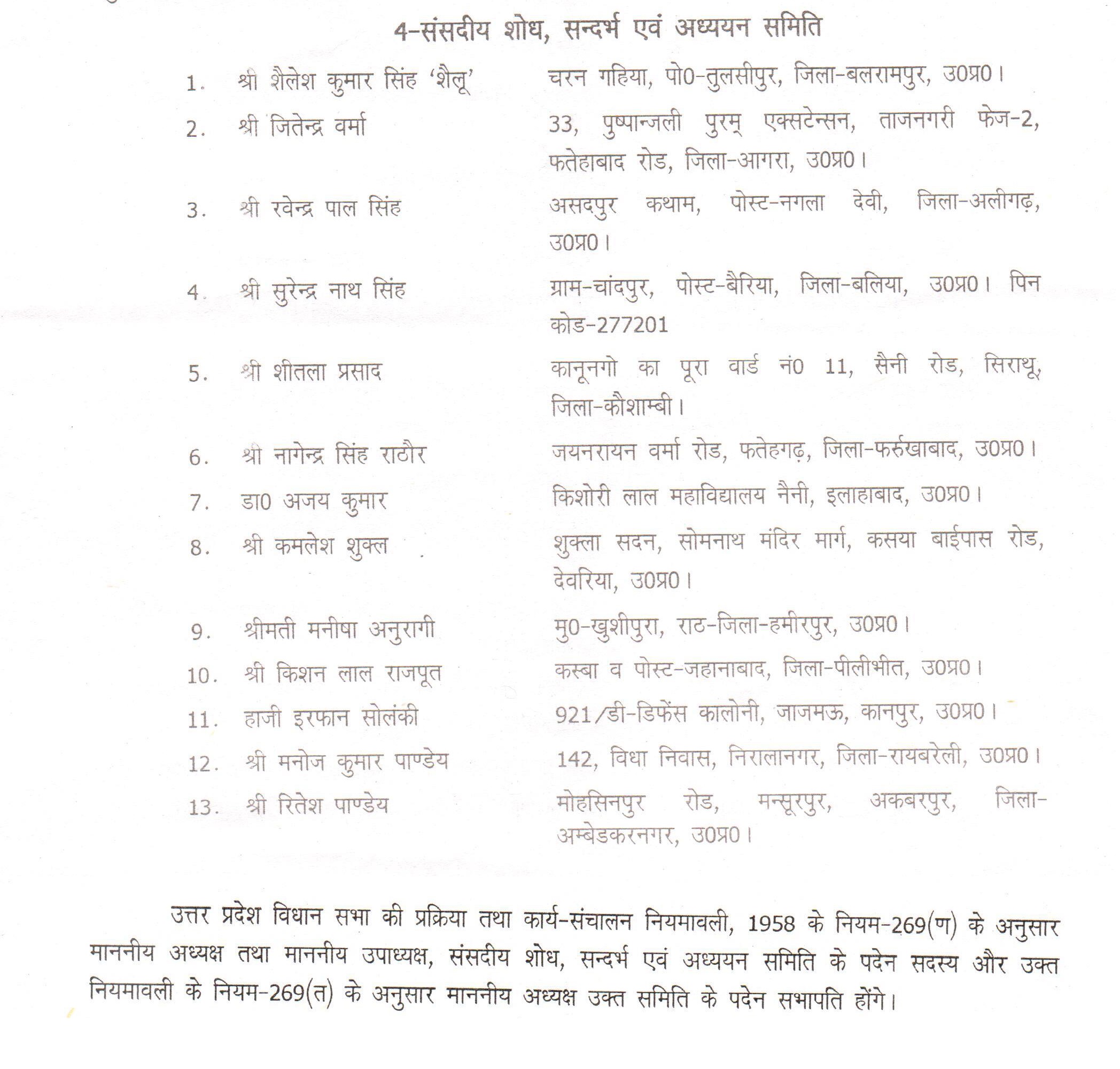 उत्तर प्रदेश विधान सभा की प्रक्रिया तथा कार्य संचालन नियमावली में नियम-269 में (घ) ‘’संसदीय अनुश्रवण समिति’’ का जोड़ा जाना। परन्तु कोई मंत्री समिति के सदस्य नियुक्त नहीं किये जायेंगे और यदि समिति के कोई सदस्य मंत्री नियुक्त किये जायें तो वे ऐसी नियुक्ति की तिथि से समिति के सदस्य नहीं रहेंगे।