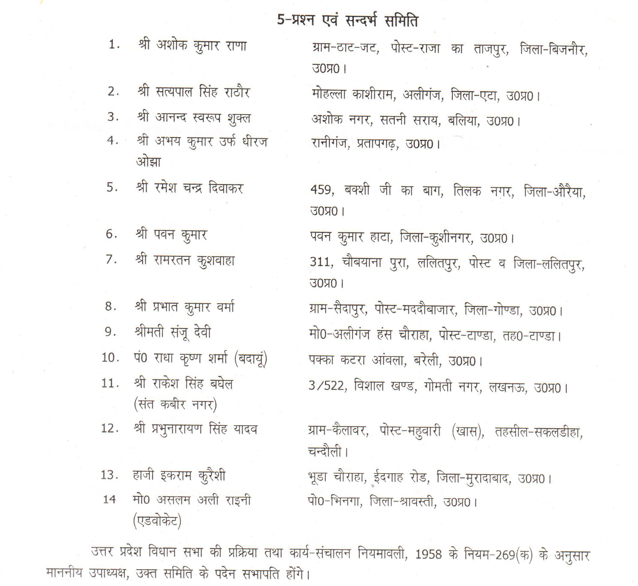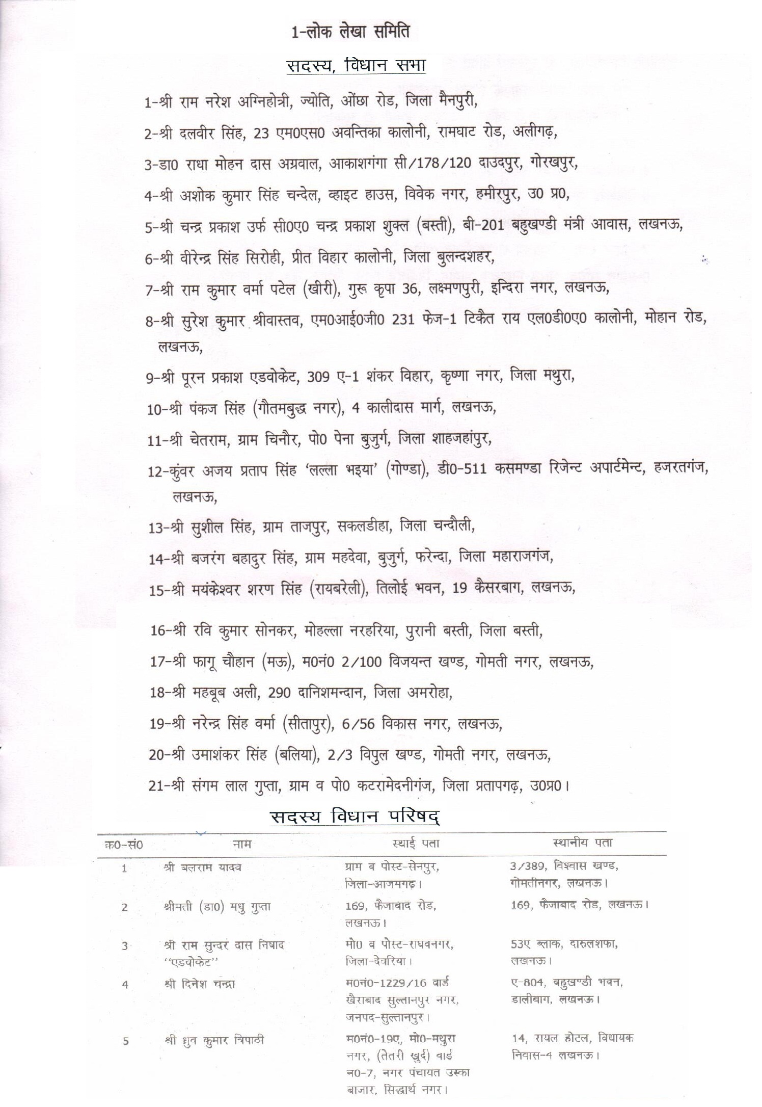 वर्तमान मे उत्तर प्रदेश विधान सभा में निम्नलिखित संयुक्त समिति हैं